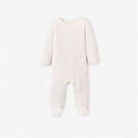 From newborn naps to crawling and toddler exploration, this ultra soft organic cotton baby jumpsuit is delicate yet durable. Featuring a celestial print this piece encompasses both function and style.