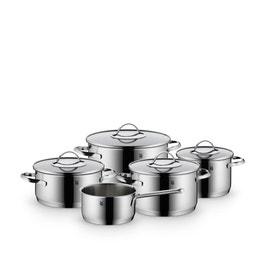 Practical features and a beautiful mirror-polished design come together for stunning results, with WMF Aparto Cookware. High-quality, heat-resistant glass lids ensure easy monitoring, while wide pouring rims make perfect, drip-free serving easy—convenient features that are matched by flawless cooking results. The Pot-Set contains 3 Soup Pots (16/20/24 cm), 1 Braising Pan (20 cm) - all including lid - and 1 Saucepan in 16 cm Diameter.