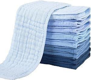 Yoofoss Muslin Cloths, Pack of 10, Muslin Nappies, Burp Cloths, 100% Cotton, 27 x 50 cm, 6-Layer Absorbent Washcloths, Folding Nappies for Baby, Newborn, Colour Gradient, Blue : Amazon.ie