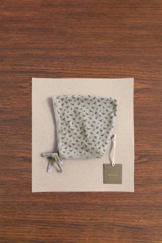 Bonnet en maille pointelle confectionné dans un tissu en coton. Il possède une fermeture ajustable sur l'avant.