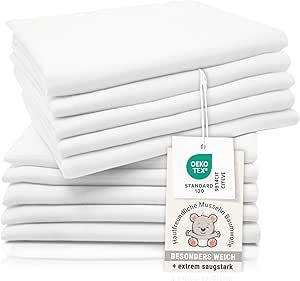 ZOLLNER 10er Set Musselin Spucktücher in 70x70 cm aus Baumwolle - hautfreundliche Mulltücher - besonders weich und extrem saugstark - waschbar bis 95°C - in weiß : Amazon.de: Baby