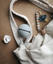 Emportez avec vous jusqu'à 3 sucettes dans ce joli étui en silicone de Mushie ! Avec sangle pratique pour l'attacher partout.