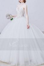 Robe de mariée Tulle Lacet Col Carré Traîne chapelle Mode de Bal avec une livraison plus rapide