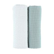 Pratique et confortable, le set de deux deux draps housses en mousseline bio écru imprimé et aqua 70x140cm est de taille idéale pour recouvrir le matelas de votre bébé. Ce produit est certifié GOTS (Global Organic Textile Standard).