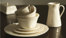 Compuesta por 20 platos llanos, 20 platos de postre, 16 platos hondos y de pan, bowls, sopera y fuentes para servir.
