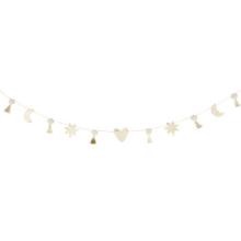 Guirlande à pompons beige et doré avec étoiles, coeurs et lunes pailletés L200