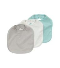 Lot de 3 bavoirs en tissu éponge en 3 couleurs unies différentes. Les bavoirs sont munis de boutons-pressions à l’arrière