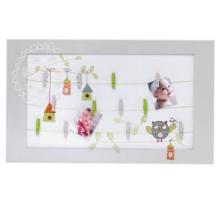 Permet d'accrocher à l'aide de pinces en bois des souvenirs ou des photos.
