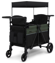 From park strolls to grocery store runs, the Jeep Aries 2-Seater Stroller Wagon by Delta Children makes any outing an adventure. Designed with today's families in mind, this versatile stroller wagon incorporates features to encourage autonomy, self-discovery, imaginative play, and sensory development. This convertible wagon offers a range of seating options to accommodate two children—both seats can face forward, both can face backwards, both can face inwards, both can face out in different directions, or you can remove the seats completely and use the wagon to carry all your gear.