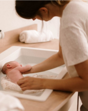 Ce rituel de soin est né de l’observation attentive de Sonia Krief, auxiliaire de puériculture passionnée. Constatant le caractère souvent expéditif du bain classique en maternité, elle a développé une approche plus douce, inspirée de la vie in utero. Enveloppé dans un lange, bercé dans une eau chaude à 37°C, le nourrisson retrouve des sensations proches de celles qu’il connaissait dans le ventre maternel. Ce bain est un moment de reconnexion émotionnelle intense, un véritable voyage sensoriel.