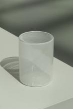 A cylindrical Murano wine glass made with the intricate filigrana technique. The fine white threads embedded in the transparent glass create a subtle, graphic texture — an ideal choice for those who appreciate the artistry of wine as much as the art of glass. The filigree is drawn from rare 1950s canes, reactivated exc