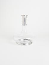 Handcrafted glass decanter with a neck and base made from lead-free Italian pewter. Features no top. Measurements: Height 22cm - Volume 1.4l Cosi Tabellini is a third generation family-run company, established in 1954. They handcraft pewter, ceramic and crystal glass objects in an artisanal workshop in the Northern Ita