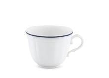 Scopri la tazzina da caffè in porcellana con bordo blu della collezione Corona. Ideale per stupire i vostri commensali in qualsiasi occasione.