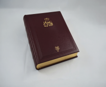 Ein handgearbeitetes, ledergebundenes Gästebuch mit Goldschnitt und Stempelprägung