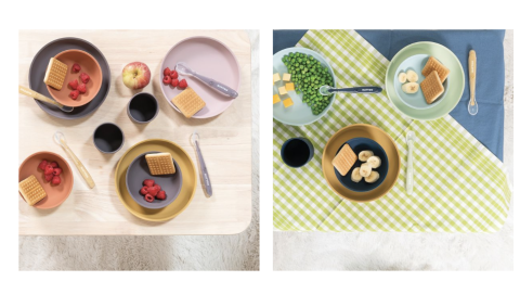 Craquez sur ce set vaisselle en silicone ocre terracotta imaginé par la marque Nattou. Ce set repas design comprend une assiette, un bol, un verre et une cuillère en silicone, ce coffret accompagnera bébé dans tous ses repas. Le silicone adhère parfaitement sur une surface plate et se nettoie très simplement.