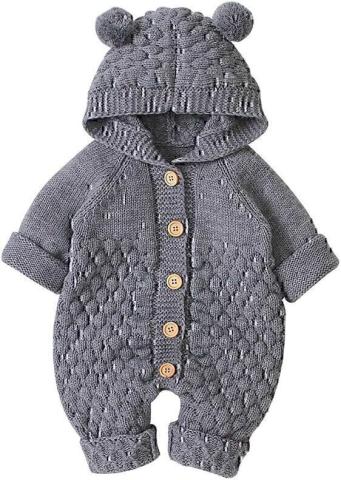 VICROAD Baby Romper with Hood Newborn Girls Boys Knitted Onesies Warm Jumper Jumpsuit Outfits - gray : Amazon.de: Fashion
