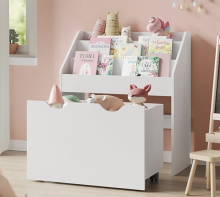 SONGMICS Children's Bookcase, Toy Shelf, with 3 Shelves, Storage Box on Wheels, Multifunctional for Children's Room, Playroom, Cloud White GKR041W10