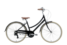 The Bobbin Brownie Is a lightweight ladies classic bike with carrier rack. A Dutch-style bicycle with mudguards for the city or country.
