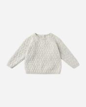 Cozy Knit Sweater with ribbed neck, cuffs, and waist, featuring a two-button back placket for easy changes.