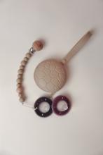 Set in soft, pointelle-knit cotton with a cardigan and pants. Cardigan with a flounced collar, opening at one side with buttons, long raglan sleeves with scalloped-edge cuffs, and ribbing at collar, cuffs, and hem.
