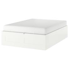 BRIMNES Canapé abatible, blanco, 160x200 cm. Debajo del somier de láminas tienes espacio para guardar cosas.