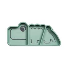 El plato de merienda stick & stay de cocodrilo con tres compartimentos separados se mantendrá en su sitio y ayudará a los pequeños comensales a merendar. Presiona el plato de silicona hacia abajo y se pegará a una superficie lisa, con succión natural, evitando que los niños lo empujen, lo vuelquen o lo tiren. Bajo la cola de Croco se esconde una solapa de fácil apertura.