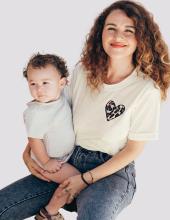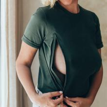 Soft and comfortable breastfeeding T-shirt with discreet nursing openings for easy feeding. A practical everyday essential for new mums.