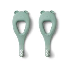 Transform tooth brushing into a playful experience with our soft silicone and nylon JANELLE toothbrush. Featuring easy-to-grasp handles, stimulating textures for an enjoyable brushing session, and playful animal details for extra fun. Baby toothbrush with playful bear details An intuitive handle that is easy to grab an