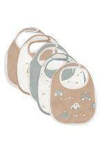 Deze 5-pack waterproof slabbetjes met handige klittenbandsluiting maken het ouderschap een stuk eenvoudiger! Met deze slabbetjes blijft de kleding van je kleintje schoon en droog, terwijl de klittenbandsluiting het aan- en uittrekken een fluitje van een cent maakt. Geniet van minder gedoe en meer quality time met je baby! Elk slabbetje in het 5-pack heeft een uniek design, shop deze in de volgende thema's: Retro Flowers, funky, teddy bear met harvest en animals. Afmeting lxb: 30x21,5 cm.