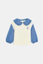 Un effet superposé qu'on adore dans le dressing des filles ! Ce top mixe une blouse en coton léger à grand col volanté avec un pull en maille tricot sans manches. Petite fleur de coton brodée sur la poitrine et fermeture dans le dos pour un habillage facile.