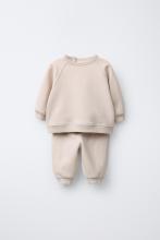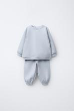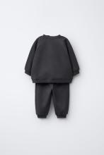 Σετ δύο τεμαχίων. Φούτερ με στρογγυλή λαιμόκοψη και μακρύ μανίκι. Τελειώματα σε ριπ. Κλείσιμο με κουμπιά τύπου πρες στο πίσω μέρος. Παντελόνι τύπου jogger με ελαστικό ζωνάρι και τελείωμα στο κάτω μέρος με λάστιχο. Εσωτερική ποιότητα φινιρίσματος με κρεμάστρα, ζεστή και απαλή.