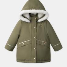 VESTE EXTERIEURE Parka kaki avec coquilles dorées Ouverture zippée sur le devant et boutons pressions Doublé en fourrure synthétique avec fils dorés Intérieur des poches en polaire VESTE INTERIEURE Doudoune doublée en polaire Intérieur des poches en polaire Les deux peuvent se porter ensemble ou séparément Boucle aux p