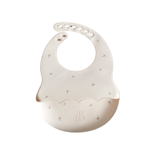 Soft and light weight silicone bib that comes with a pouch for catching food and reinforced buttonholes for a good and comfortable fit.