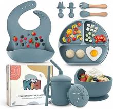 Coffret Repas Bebe en Silicone, Set Vaisselle 1er Age Complet, Idée Cadeau Naissance Bébé sans BPA avec Cuillère, Bavoir, Tasse et Assiette Bebe Ventouse Fille et Garcon, dme Bebe - Bleu : Amazon.fr: Bébé et Puériculture