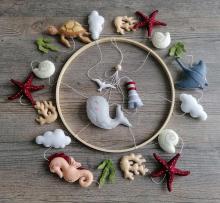 Orné de délicats coquillages et d'hypocampes gracieusement suspendus, ce mobile apporte une touche de sérénité et de rêve à la chambre de votre enfant. Chaque élément est minutieusement fabriqué à la main, garantissant une qualité et une originalité incomparables.