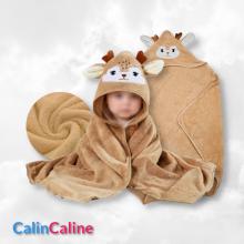 La personnalisation de la cape de bain cerf camel avec un prénom brodé, sa couleur originale et la petite tête de cerf avec ces oreilles et cornes sur la capuche en feront le cadeau de naissance idéal.