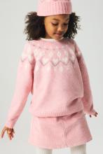 Bonnet en maille côtelée et scintillante avec bord replié. Modèle avec oreilles appliquées sur le dessus et détails brodés devant.