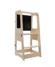 IN HET KLEUR NATURAL past in ons huis. Ontdek de Montessori Leertoren Naevie - Het innovatieve hulpje voor de groei van jouw kleine creatieveling! Deze veelzijdige 3-in-1 leertoren transformeert eenvoudig tot een tafeltje met geïntegreerd krijtbord voor creatieve momenten.