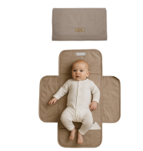 Soosie - Opvouwbaar Waterdicht Verschoonmatje – Reisverschoonmat Baby 70×55 cm – Beige – Met Vakje & Klittenbandsluiting