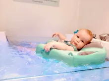 Moment de totale déconnexion pour notre cher Mini-Zou dans un spa spécialement conçu pour les nouveaux-nés.