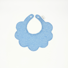 Scalloped baby bib showcasing a delicate blue on blue poppy & daisy print.