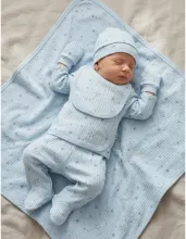 Set de 6 piese pentru bebeluși, ideal pentru primele zile, include o păturică, bluză, căciuliță, mănuși, bavetă, și pantalonși cu botosei integrați. Confecționat din 100% bumbac, acest set...