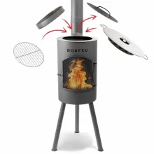 BonFeu BonGiano SP Zwart Tuinhaard Warmte, sfeer en buitenkoken, dat is waar de tuinhaard BonFeu Bongiano voor staat. De BonGiano SP is namelijk niet alleen een fijne terrashaard, door de aanwezigheid van een BBQ rooster kun je de haard ook gebruiken