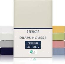 Dreamzie - Set of 2 Children's Beige Fitted Sheets - 100% Cotton - 40 x 90 cm