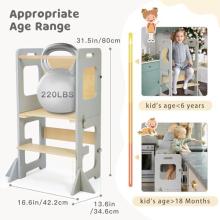 Montessori Learning Tower for Kids, Learning Tower with Chalkboard, Multi-function 3 in 1, Foldable, Learning Tower from 1 Year for Kitchen, Table, Bathroom, Tower