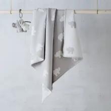 This beautiful woven blanket will grow with little ones – from baby to toddler and beyond. Made from soft, brushed cotton that’s warm and lightweight, it features a gorgeous grey backdrop with little elephants and neat blanket stitch around
