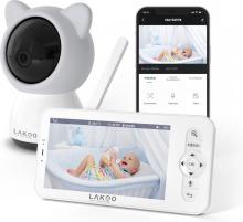 LAKOO BabyGuard Kitty - Baby Monitor with Camera, App and Monitor - 720HD, Wifi, Night Vision, Motion Detection, Talkback Function, Sleep Music, Rotatable - 1 Camera