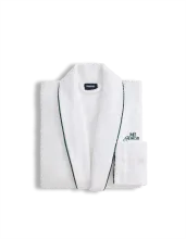 Le peignoir Mi Amor de Bonsoirs vous convie à vous plonger dans la douceur, avec ses détails méticuleusement élaborés pour une sensation de confort, évoquant celle que l'on retrouve dans les hôtels. A personnaliser selon les envies