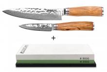 Coffret 2 couteaux Wusaki Damas 10Cr + pierre d'aiguisage