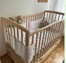 Evolutive wooden baby bed, from baby to toddler. Can be used as ânext to meâ cot too.